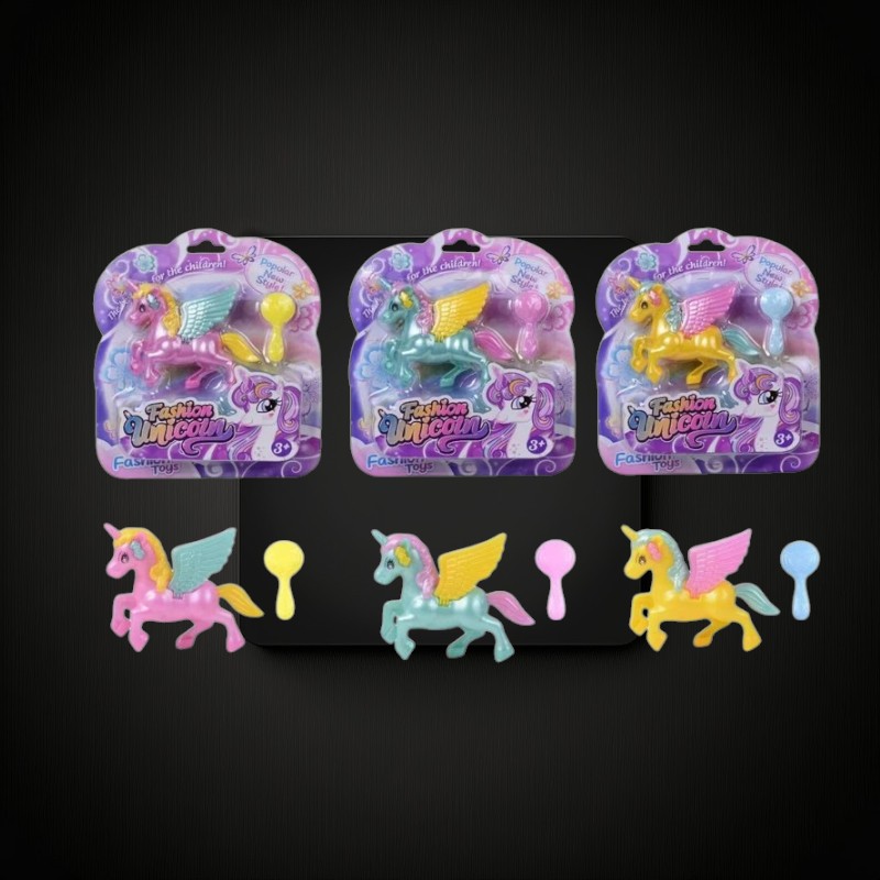8" CARDED ASSORTED UNICORN TOY WITH BRUSH