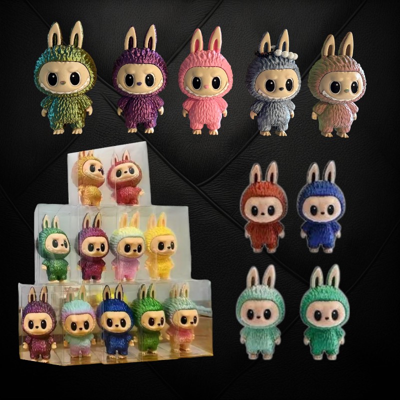 ASSORTED COLOR 3D PRINTED LABUBU FIGURES IN CLEAR DISPLAY BOX
