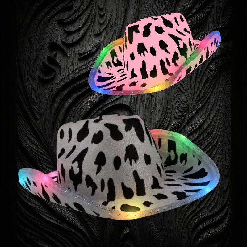 ASSORTED COLOR COWPRINT LED COWBOY HAT