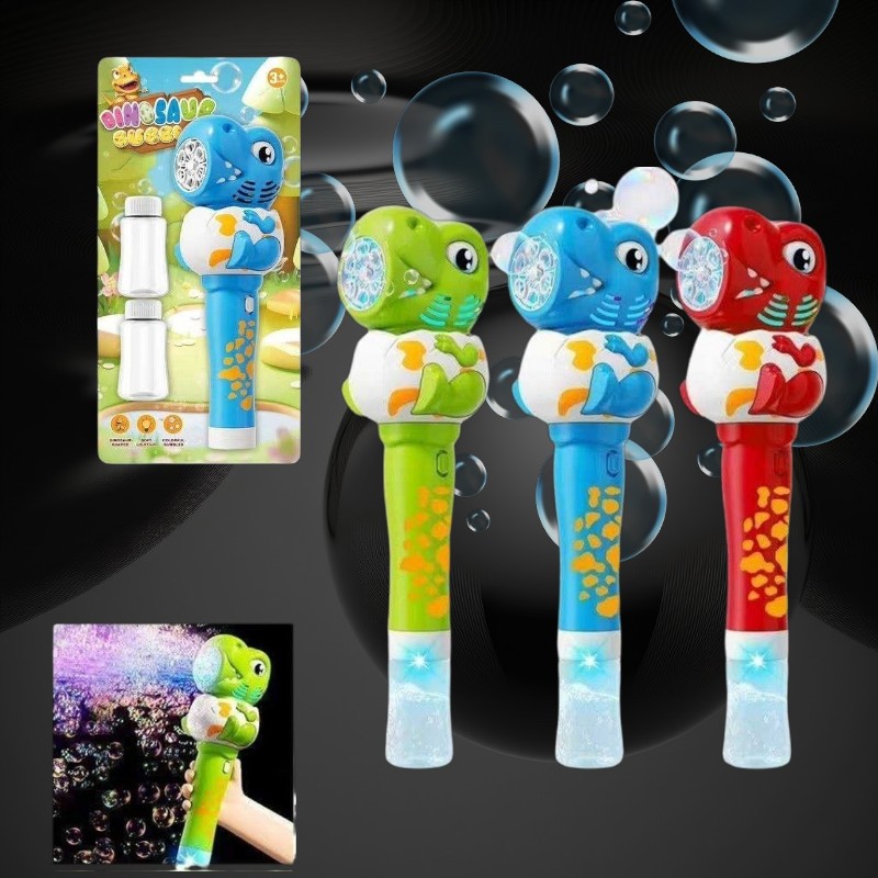 ASSORTED COLOR LED DINOSAUR GATLING BUBBLE WAND
