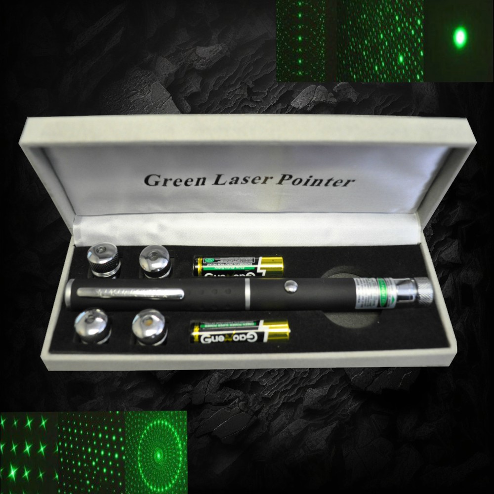 HIGH POWERED GREEN LASER POINTER WITH ASSORTED TIPS