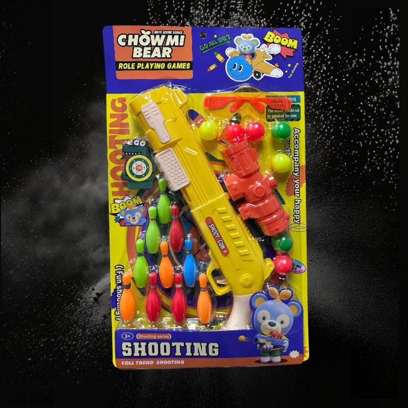 LARGE CARDED POP BALL TOY SHOOTER WITH TARGETS AND ACCESSORIES