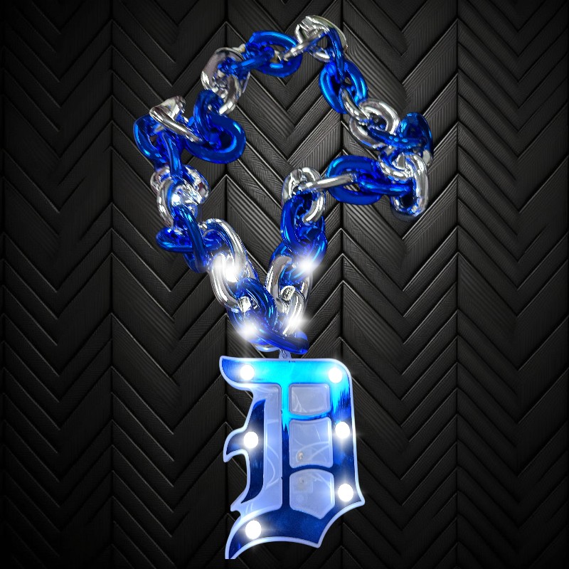 LED BLUE AND SILVER CHAIN LINK NECKLACE WITH LED DETROIT CHARM